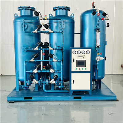 制氮机是指以空气为原料,利用物理方法将其中的氧和氮分离而获得氮气的设备按变压吸附技术设计、制造的氮气制取设备。制氮机以优良碳分子筛为吸附剂,采用常温下变压吸附原理(PSA)分离空气制取高纯度的氮气。通常使用两吸附塔并联,由PLC控制进口气动阀自动运行,交替进行加压吸附和解压再生,完成氮氧分离,获得所需高纯度的氮气。