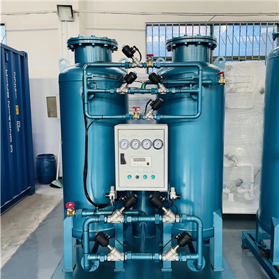 制氮机是指以空气为原料,利用物理方法将其中的氧和氮分离而获得氮气的设备按变压吸附技术设计、制造的氮气制取设备。制氮机以优良碳分子筛为吸附剂,采用常温下变压吸附原理(PSA)分离空气制取高纯度的氮气。通常使用两吸附塔并联,由PLC控制进口气动阀自动运行,交替进行加压吸附和解压再生,完成氮氧分离,获得所需高纯度的氮气。