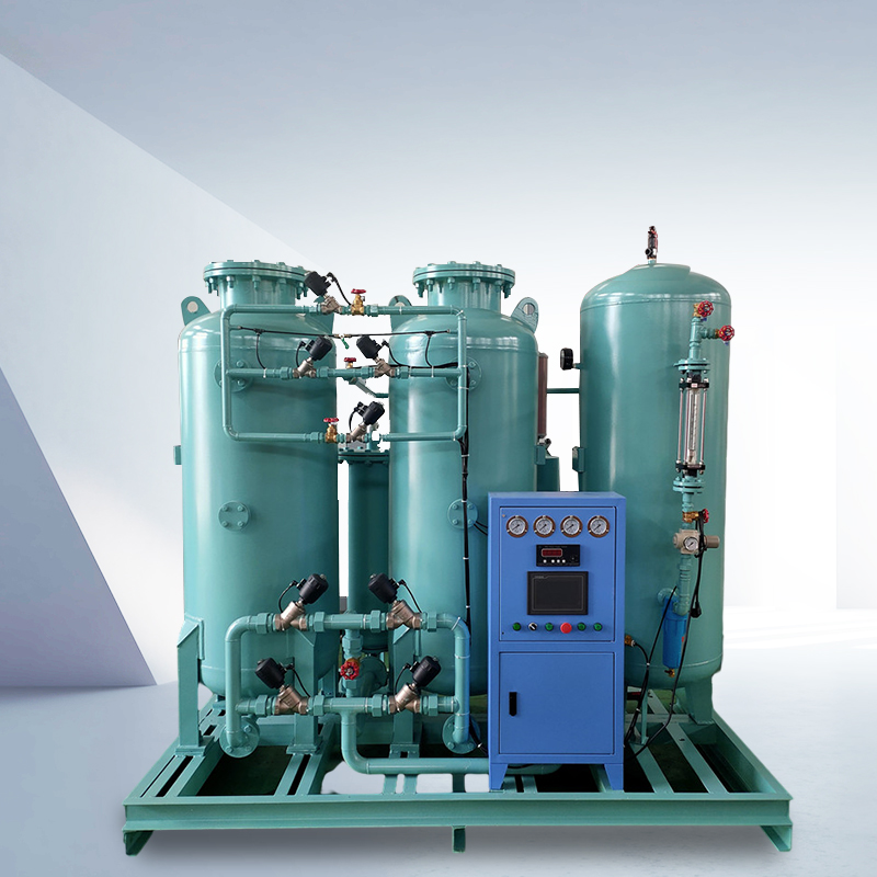 制氮机是指以空气为原料,利用物理方法将其中的氧和氮分离而获得氮气的设备按变压吸附技术设计、制造的氮气制取设备。制氮机以优良碳分子筛为吸附剂,采用常温下变压吸附原理(PSA)分离空气制取高纯度的氮气。通常使用两吸附塔并联,由PLC控制进口气动阀自动运行,交替进行加压吸附和解压再生,完成氮氧分离,获得所需高纯度的氮气。