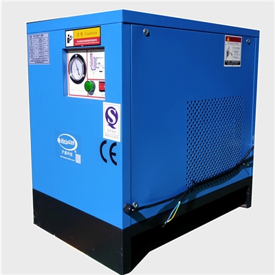 利用冷媒与压缩空气进行热交换,把压缩空气温度降到2~10℃范围的露点温度,使压缩空气中含水量趋于超饱和的状态,从而除去压缩空气中的水分(水蒸气成分)。